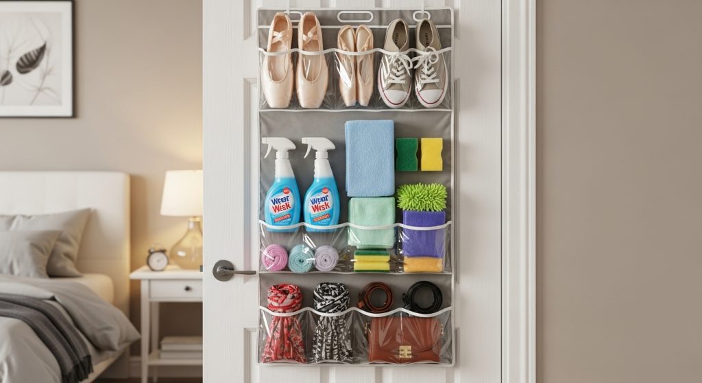 Over-the-door organizers are perfect for creating extra storage in closets, bathrooms, or bedrooms. These hangers can hold shoes, accessories, cleaning supplies, and more, helping you make use of often-overlooked space.