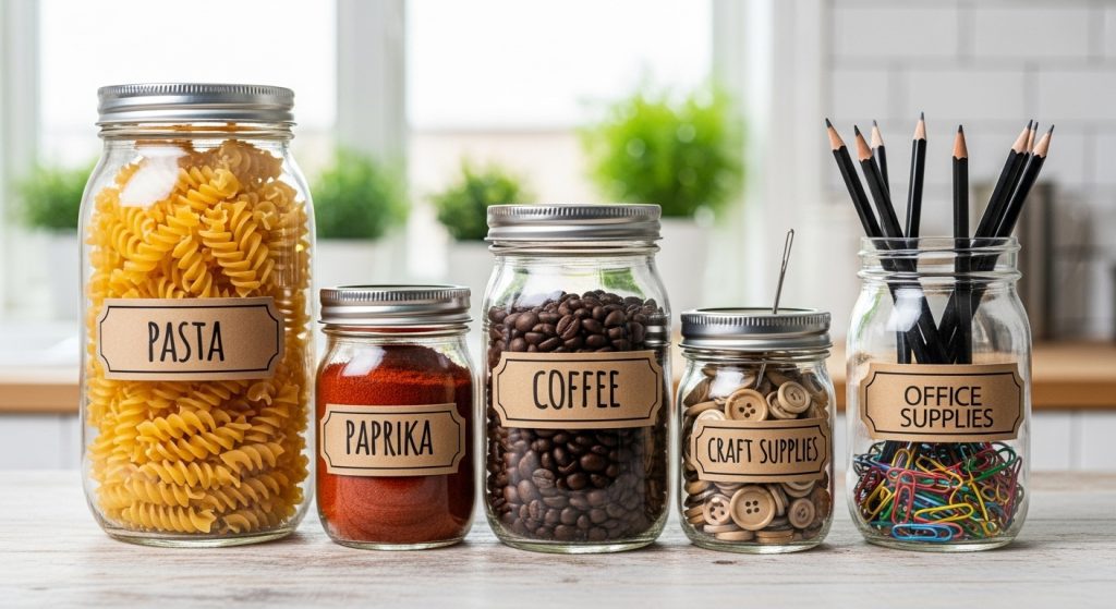 - DIY Tip: Paint the jars or add decorative labels to keep them looking neat and organized. Group similar items together for easy access.
