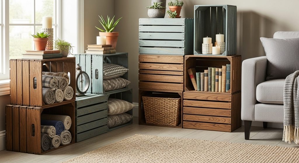 7. Transform Old Crates into Stylish Storage Bins