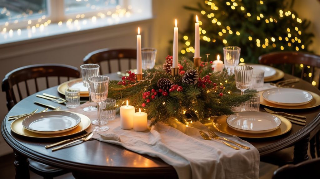 - Table Styling: Use scented candles, pinecones, and elegant tableware for Christmas dinner.
