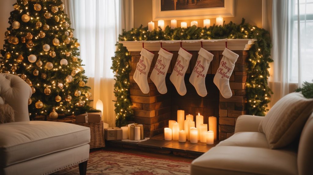 - Fireplace & Mantel Magic: Add garlands, candles, and stockings above the fireplace for a cozy yet festive look.