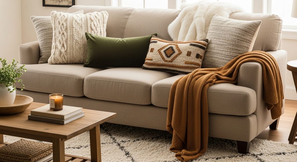 Soft textures create comfort. I brought in cozy rugs, knitted throws, and patterned cushions. These pieces added color and personality without overspending. The room finally felt complete. Textiles are often the unsung heroes in any living room makeover before-and-after transformation.